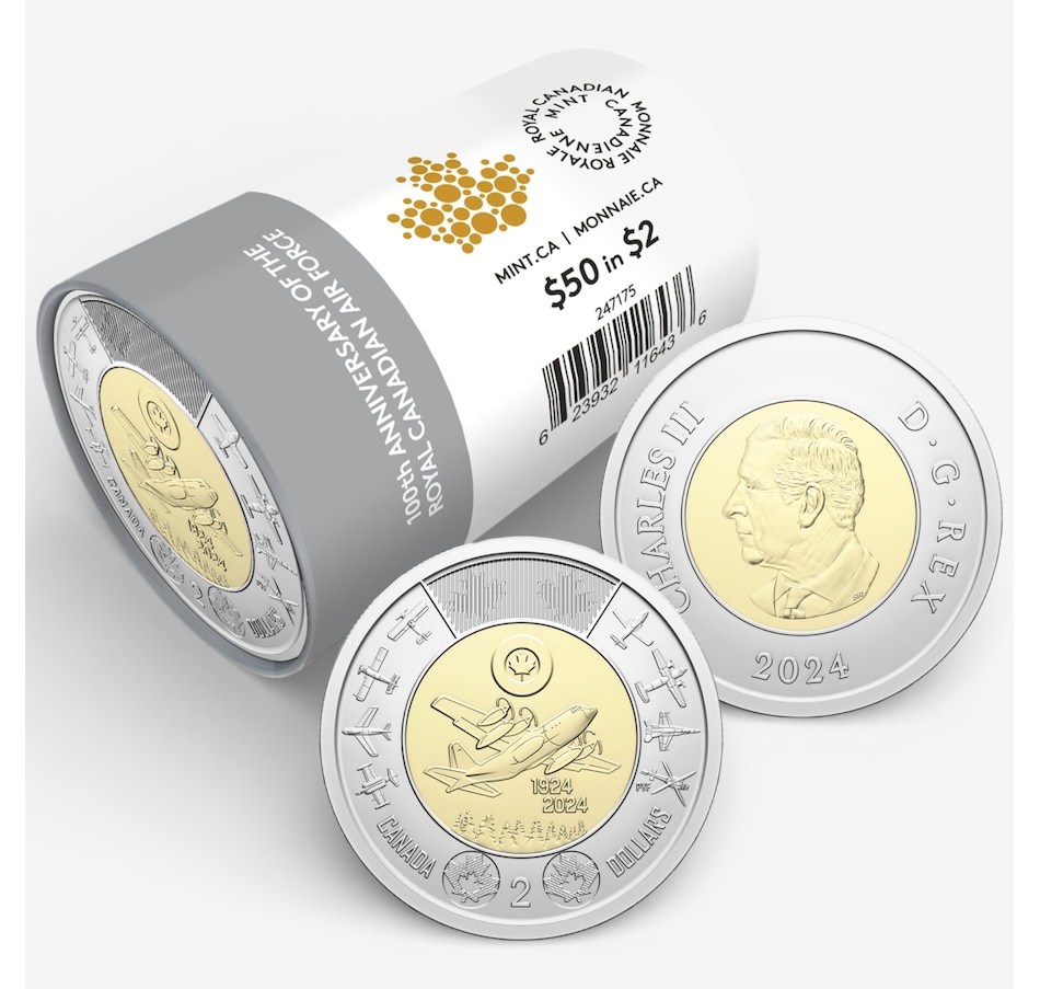 2024 $2 Royal Canadian Air Force 100th Anniversary Special Wrap Roll (classic engraved version, 25 coins per roll)