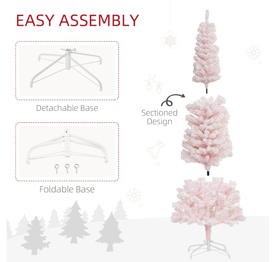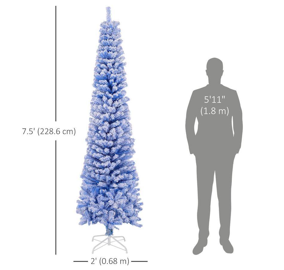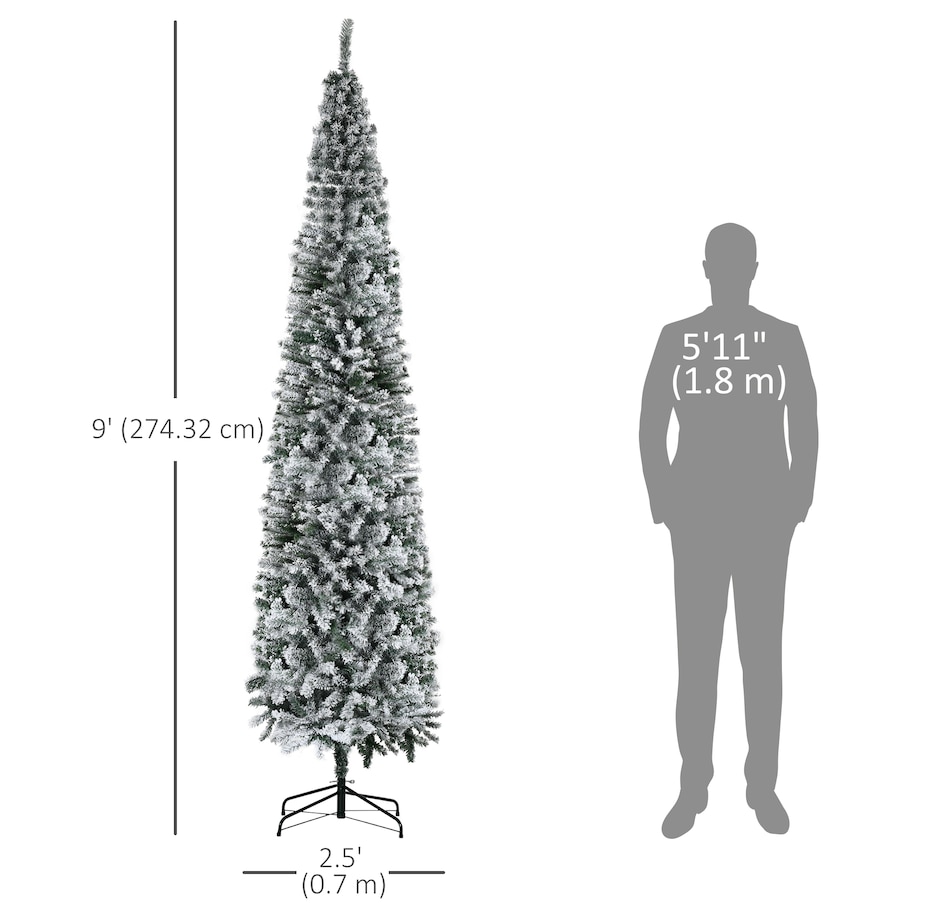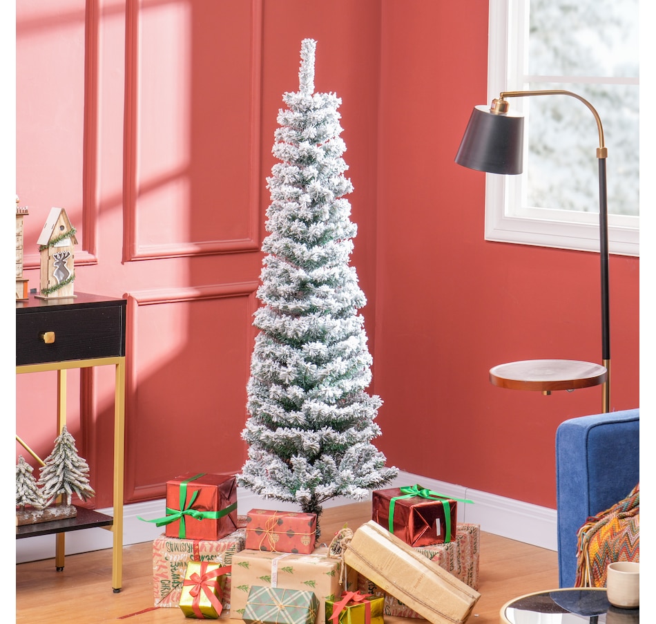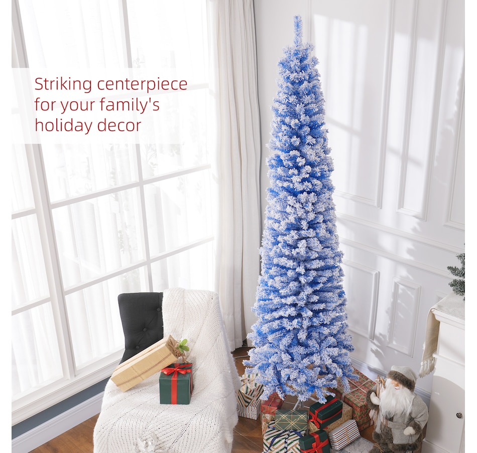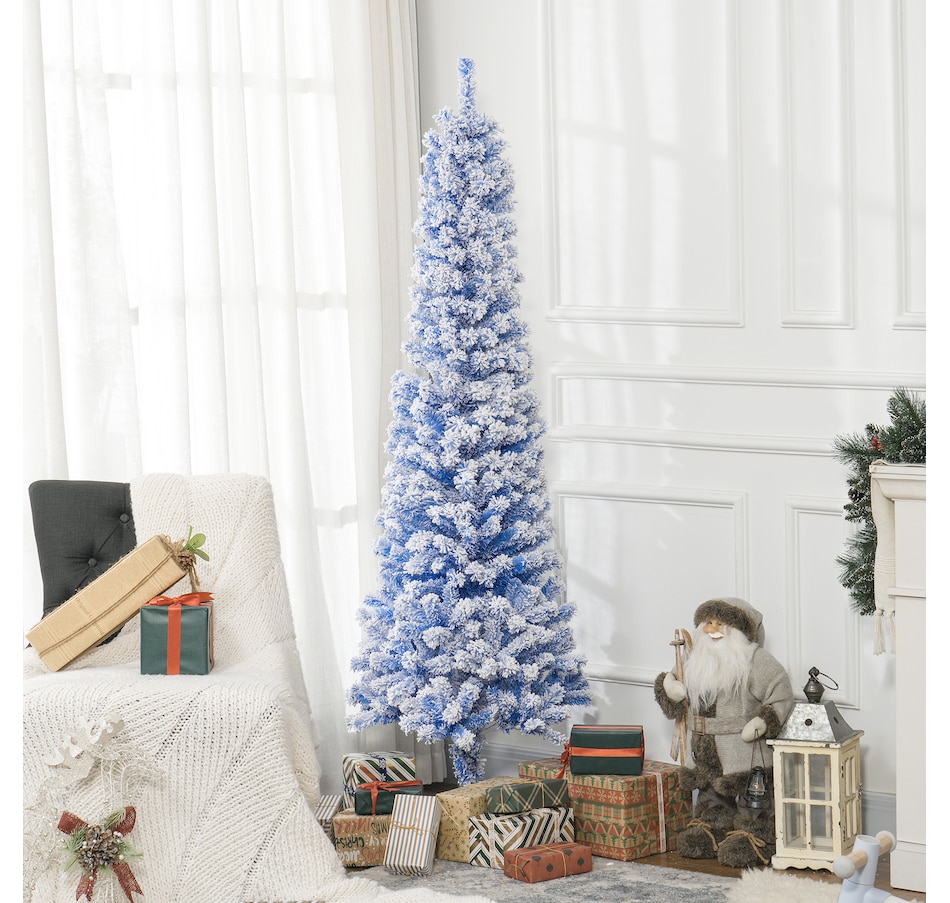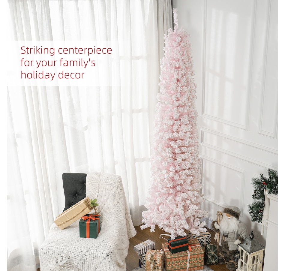 Bring nature home without the mess with this artificial Christmas tree from HOMCOM. Our beautiful holiday tree provides a great alternative to conventional trees with easy set up and little mess or maintenance required. Designed in a full pine tree shape, this artificial flocked Christmas tree consists of full-bodied and realistic plastic tips. This slim Christmas tree is sure to be a striking centerpiece for your family's holiday décor this year and in years to come.Features: