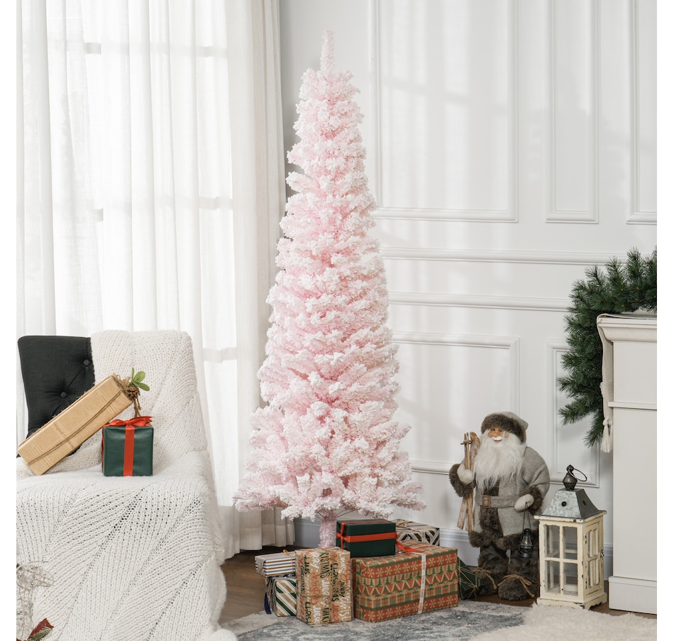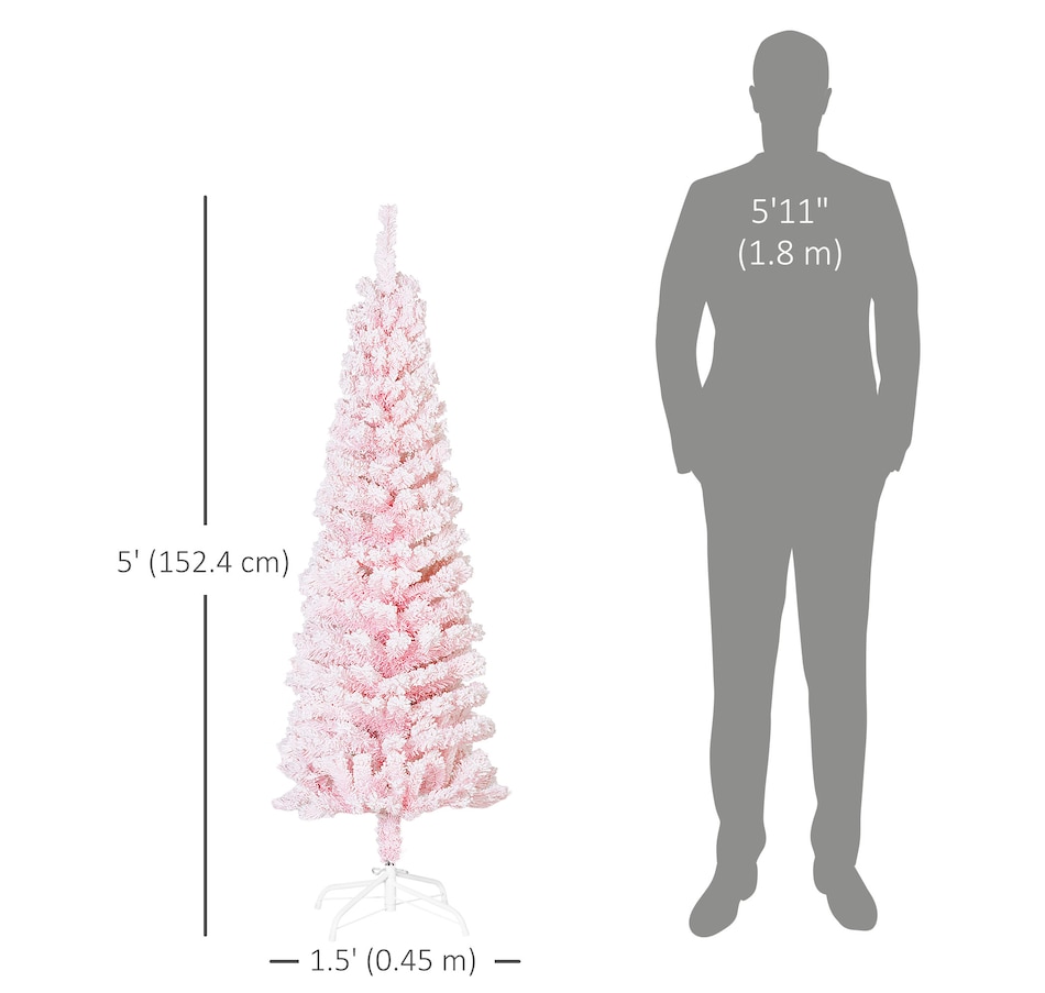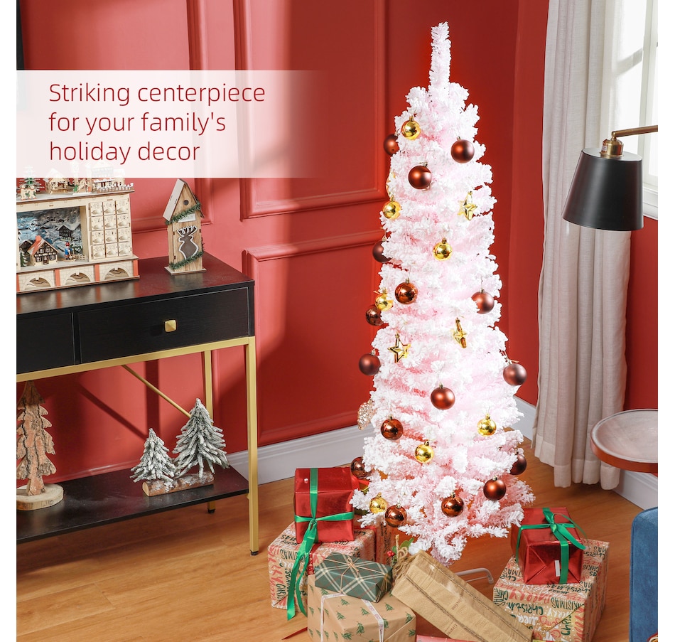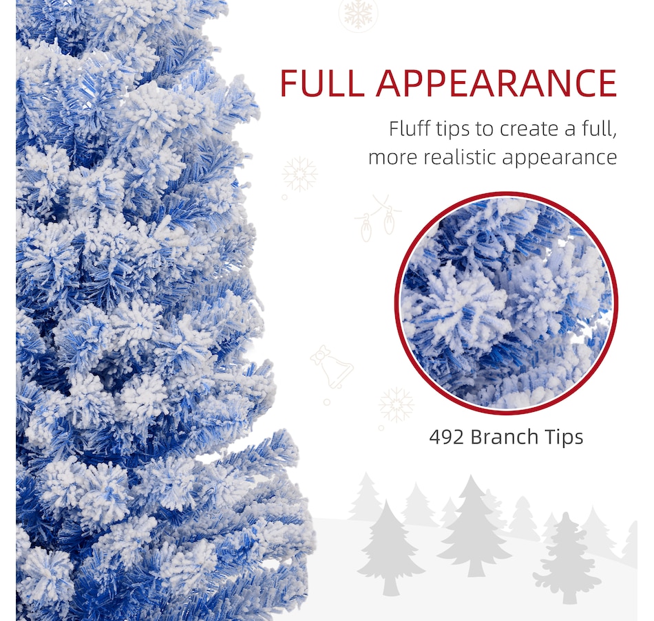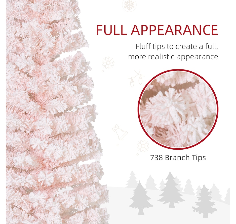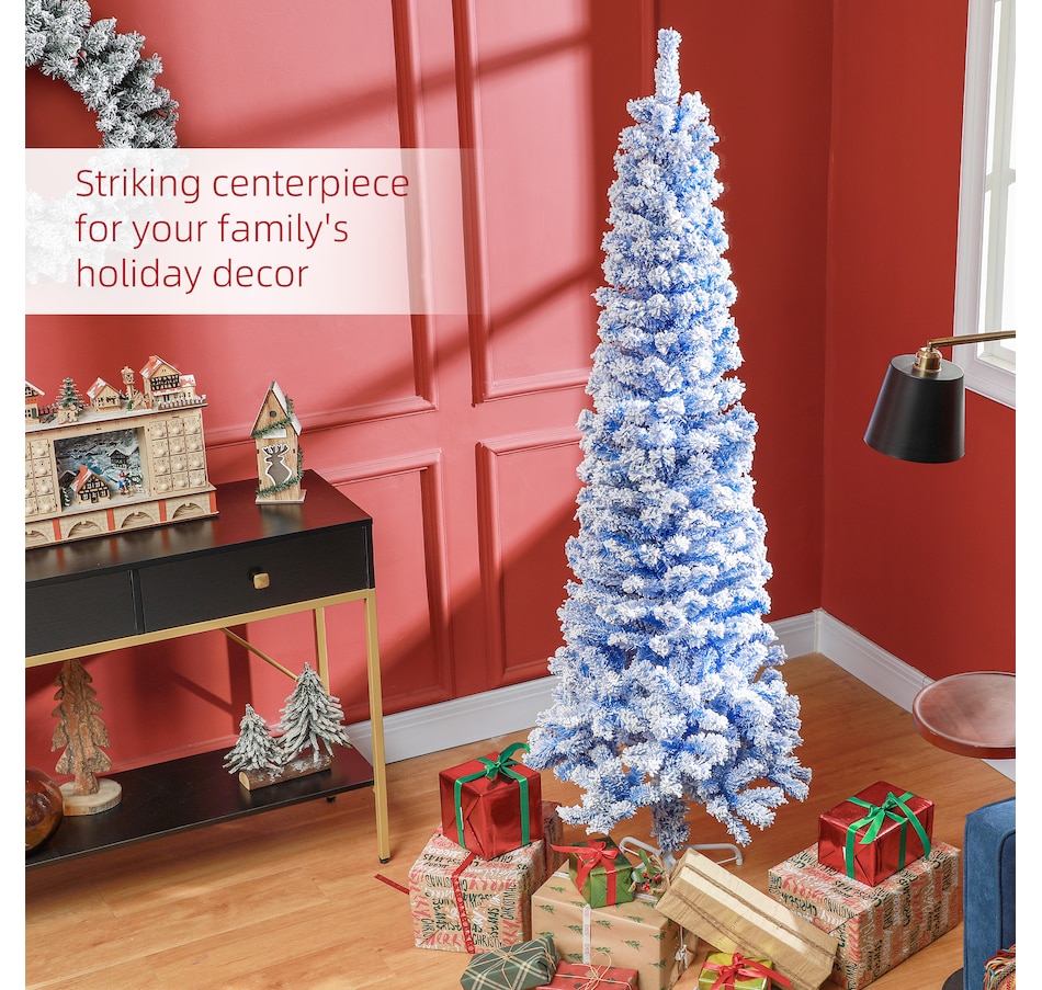 Bring nature home without the mess with this artificial Christmas tree from HOMCOM. Our beautiful holiday tree provides a great alternative to conventional trees with easy set up and little mess or maintenance required. Designed in a full pine tree shape, this artificial flocked Christmas tree consists of full-bodied and realistic plastic tips. This slim Christmas tree is sure to be a striking centerpiece for your family's holiday décor this year and in years to come.Features:
