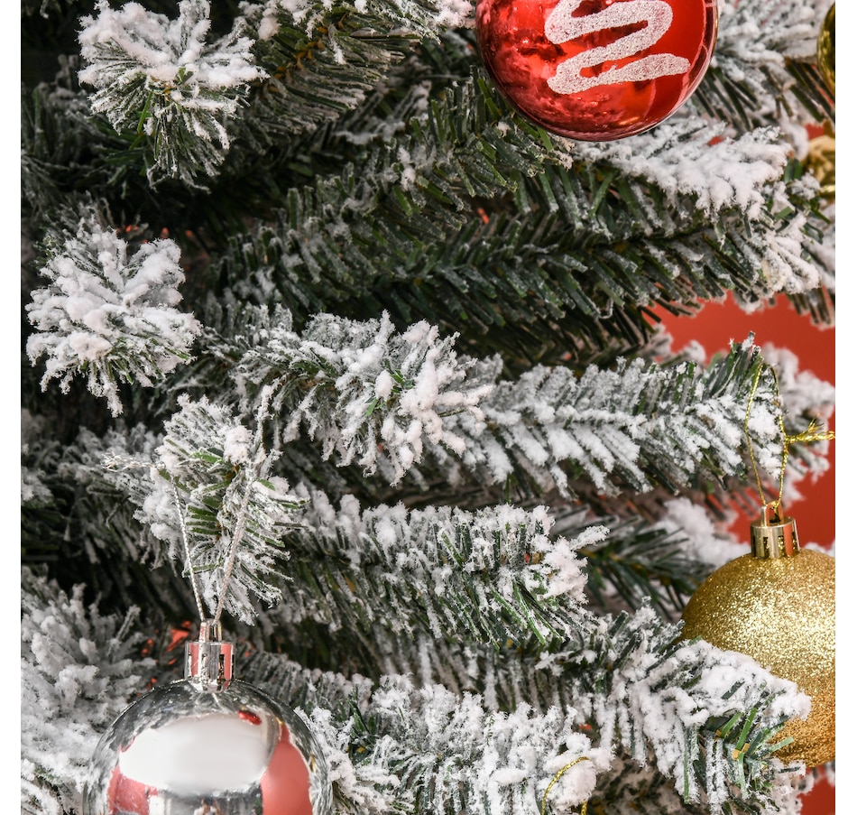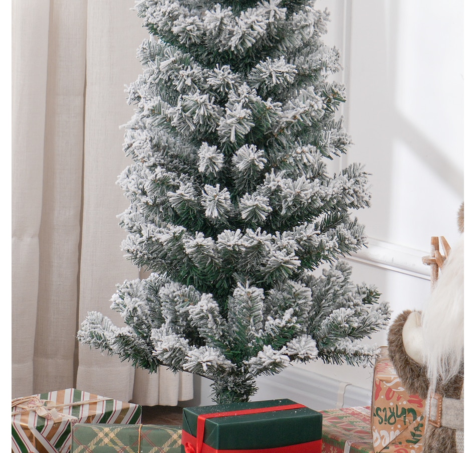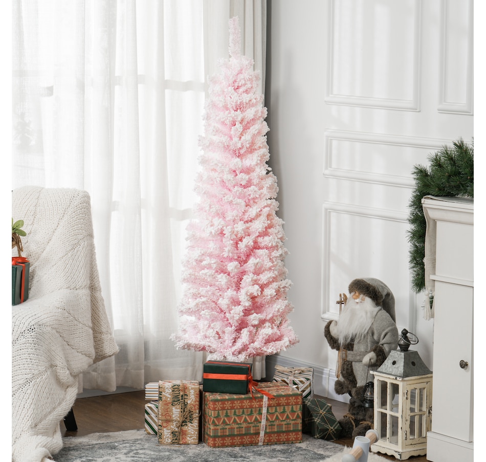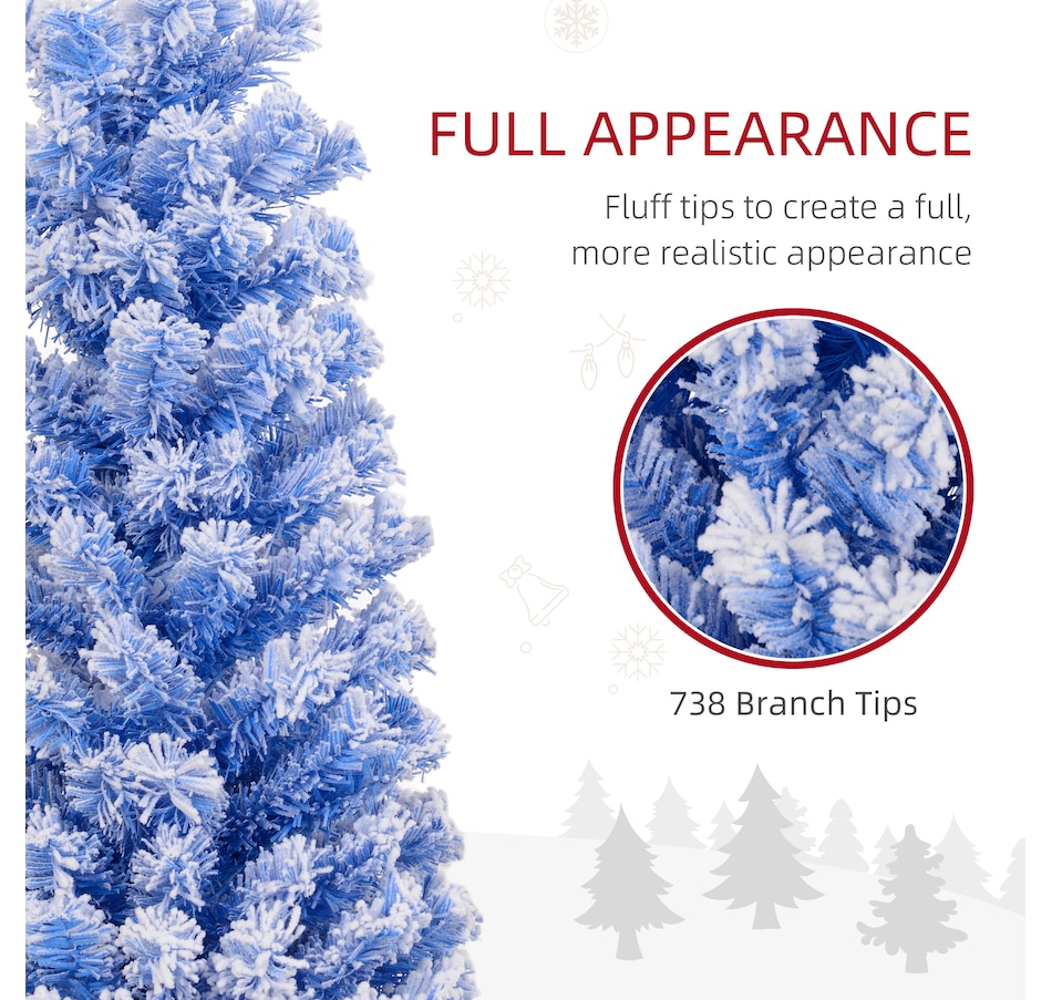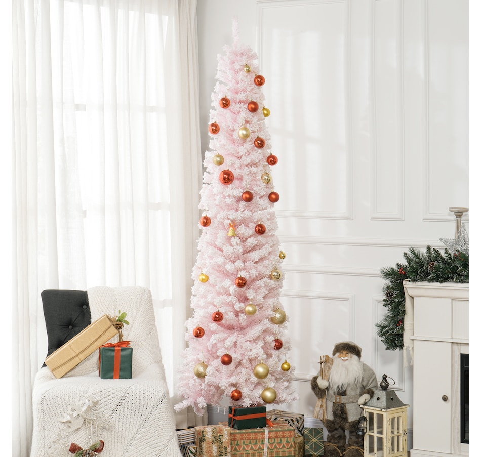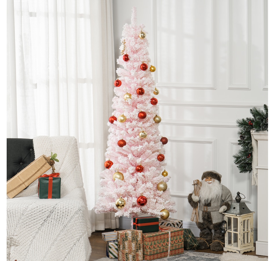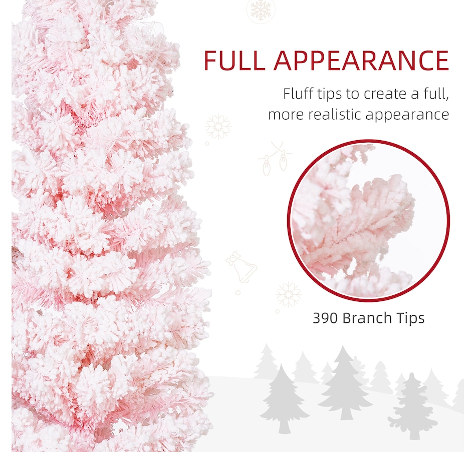 Bring nature home without the mess with this artificial Christmas tree from HOMCOM. Our beautiful holiday tree provides a great alternative to conventional trees with easy set up and little mess or maintenance required. Designed in a full pine tree shape, this artificial flocked Christmas tree consists of full-bodied and realistic plastic tips. This slim Christmas tree is sure to be a striking centerpiece for your family's holiday décor this year and in years to come.Features: