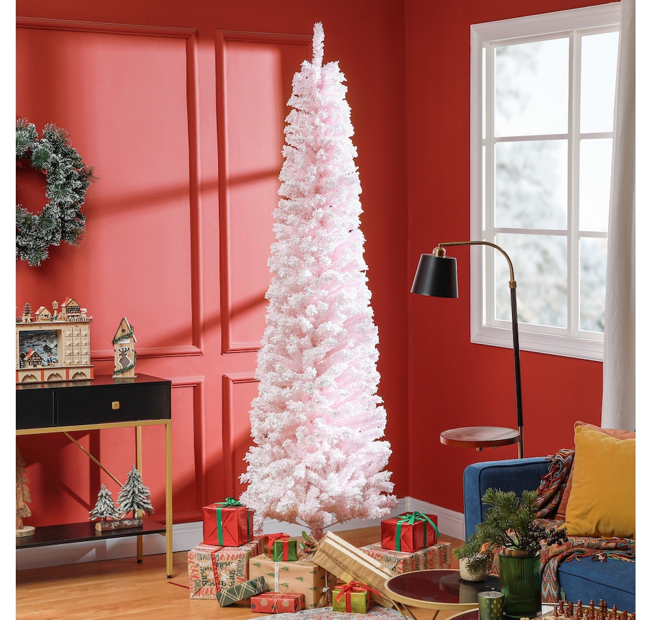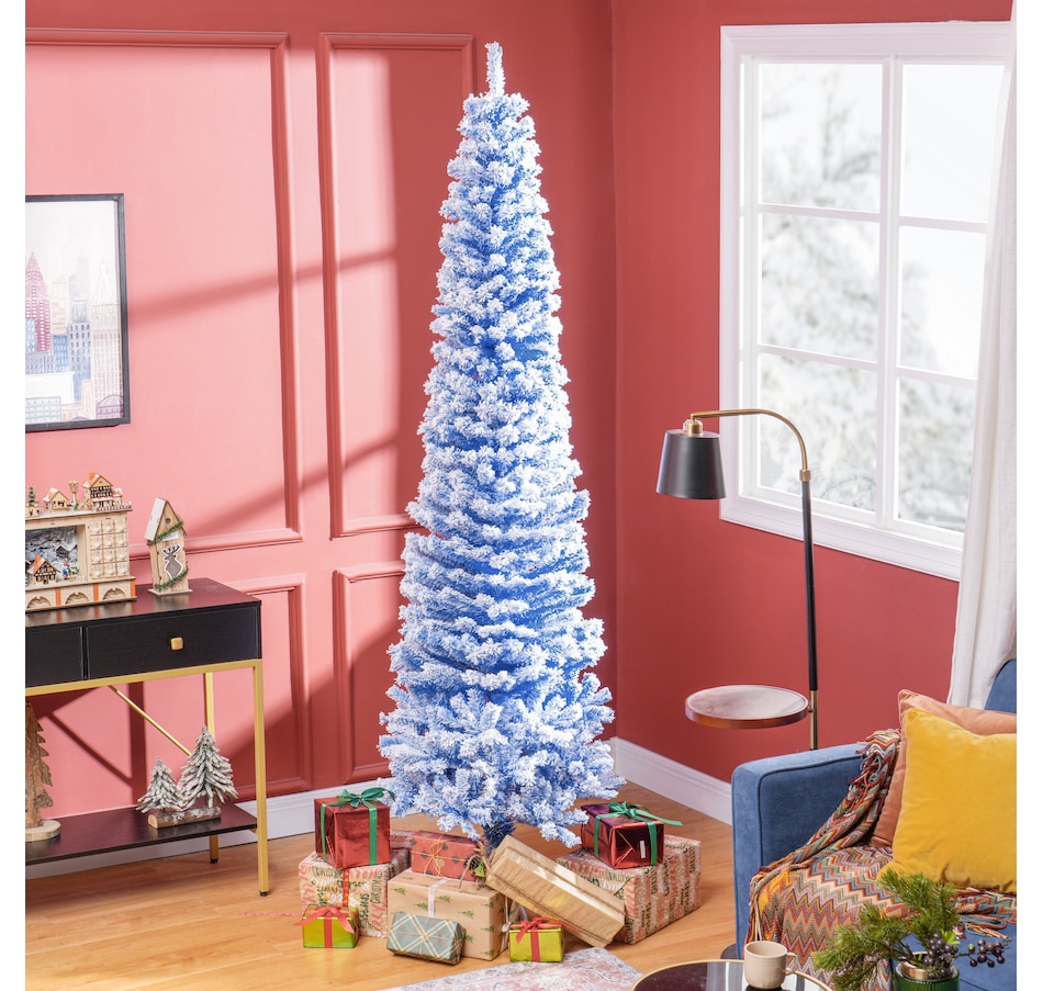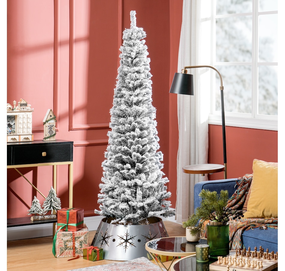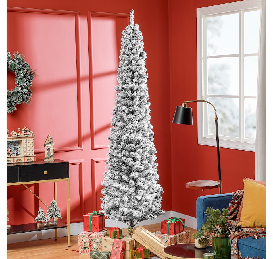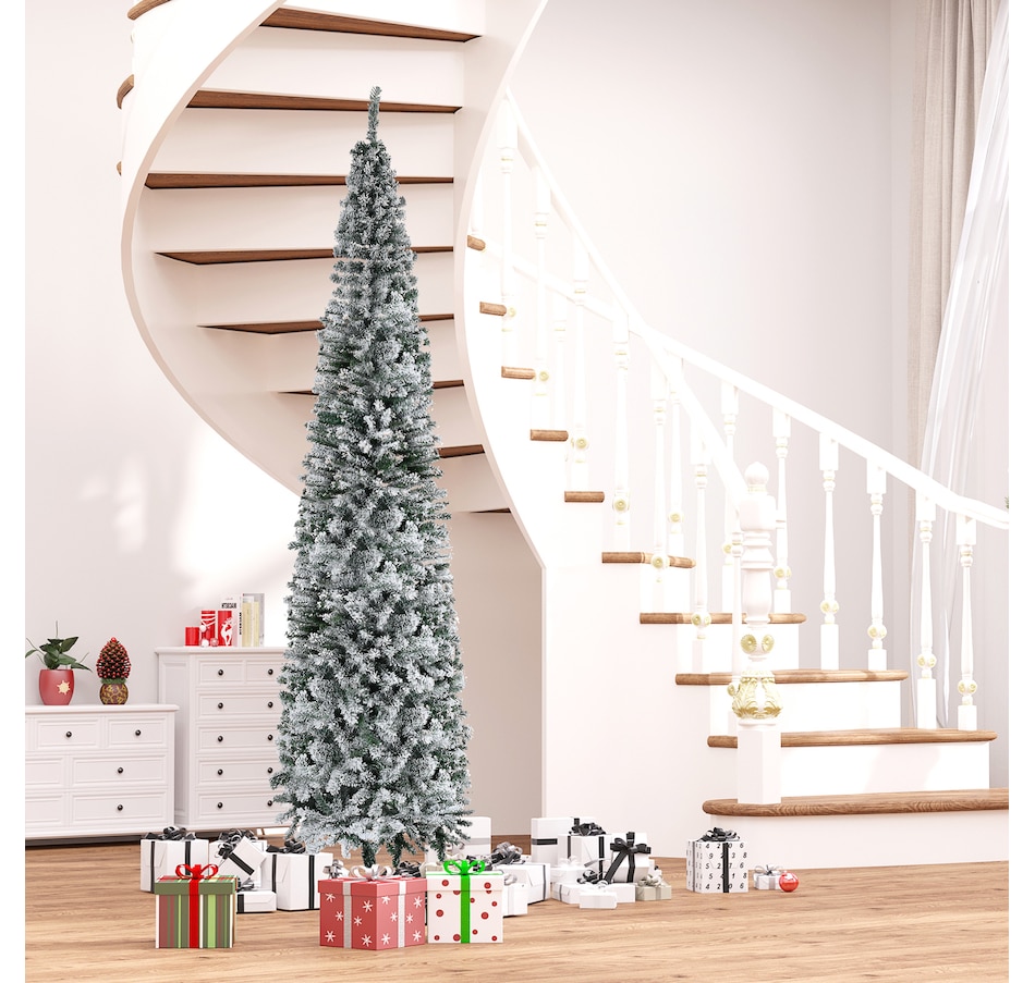 Snow Flocked Pencil Christmas Tree Slim Artificial Christmas Tree