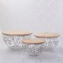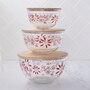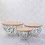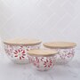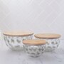 Give your kitchen an upgrade with these decorative glass mixing bowls with bamboo lids! From Temp-Tations Ovenware.