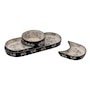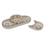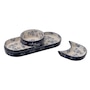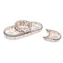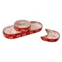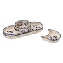 • Dimensions: 14 1/4" x 5 7/8" x 1 3/8" (tray), 5 1/2" x 5 1/2" x 1 1/2" (plates), and 5 5/8" x 5 5/8" x 2 3/4" (bowl)