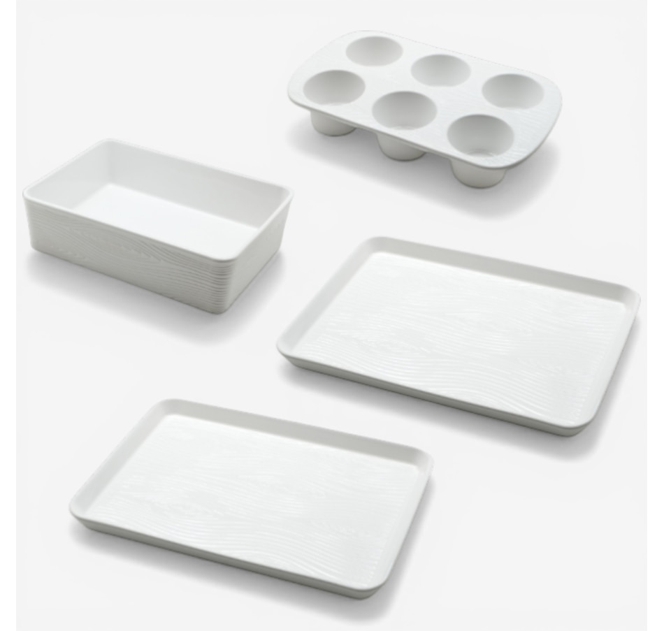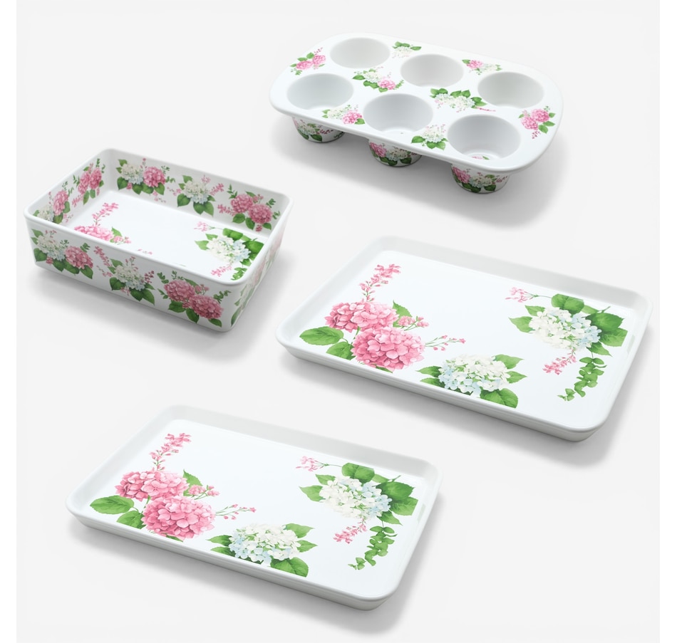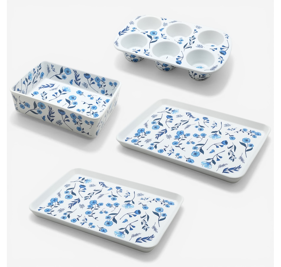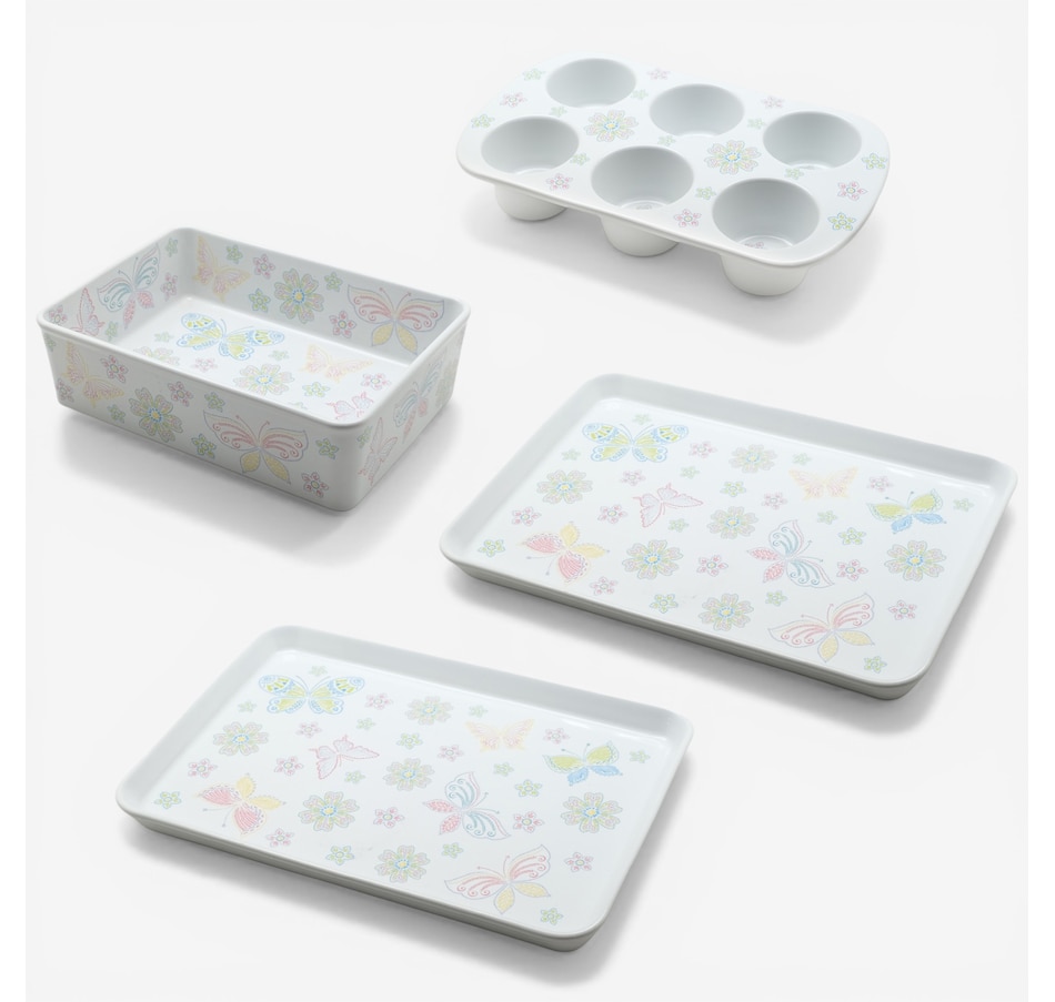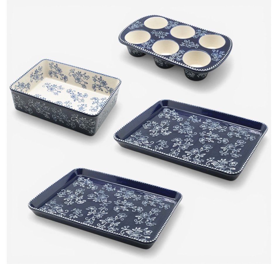 Whip up family favourites or treat loved ones to home-baked muffins with this four-piece ceramic bakeware set from temp-tations, perfect for both daily use and special gatherings. With two classic rectangular baking sheets, a small pan for side dishes and a convenient six-cup muffin pan, mealtime and snack prep are a breeze!