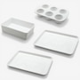 • Dimensions: measures approximately 13"L x 9"W x 1.1"H (baking sheets); 9"L x 6.5"W x 2.56"H (small rectangular pan); 12"L x 7"W x 2"H (6-cup muffin pan)
