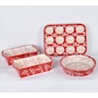 • (1) pie plate, (2) 1.75-quart loaf pan, and (1) 12-cup muffin pan baker