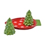 These adorable holiday salt and pepper shakers make a cheerful and functional addition to your dinner table! This three-piece set comes with two Christmas-tree shakers and a holiday bulb-shaped plate. It can become a joyful tradition to bring out each year, and you'll love the way the detailed and colourful designs add delight to your table!